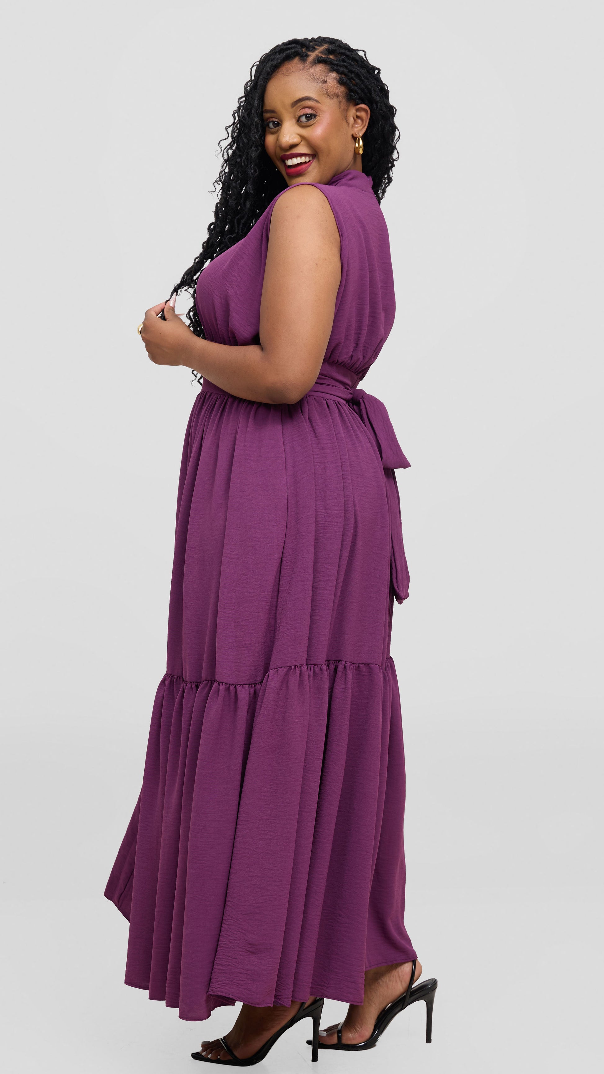 Stay stylish in our solid-colour maxi dress featuring a versatile front- or back-tie belt that lets you choose your perfect fit. The block-colour design creates a clean, modern look, while the midi length keeps it classy and wearable for work, weekends, and special outings.